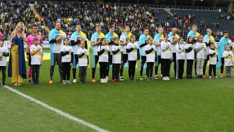На ігровій формі футболістів обох команд було зображено прапор України з написом Football for Peace. Зустріч почалася з хвилини мовчання на спомин про жертв війни.