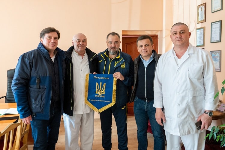 Пізніше представники УАФ та місцевої влади також відвідали в лікарні поранених захисників України. Тут президент національної асоціації також організував відеозв’язок із гравцями головної команди країни. «Такі моменти спілкування завжди зворушують: футбольні зірки, за яких у мирний час уболівають мільйони, зараз усім серцем уболівають за воїнів, які захищають Україну. Мріють побачити їх на своїх матчах після нашої перемоги, і ми в цьому обов’язково допоможемо», — сказав Андрій Павелко.