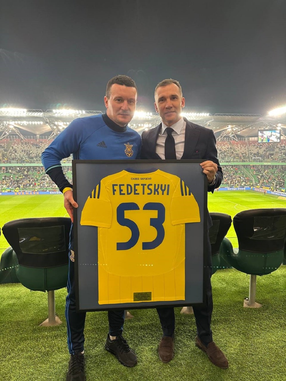 Користуючись нагодою, Українська асоціація футболу висловила свою вдячність за карʼєру в збірній України колишнім захисникові та нападникові синьо-жовтих — Артему Федецькому та Євгену Селезньову відповідно.