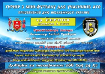 У суботу, 19 серпня, у Вінниці відбудеться турнір з міні-футболу серед учасників АТО. Він присвячений Дню незалежності України.