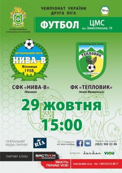 «Нива-В» незабаром проведе поєдинок 16-го туру чемпіонату України з футболу в другій лізі. Команда Василя Вовка гратиме з «Тепловиком» (Івано-Франківськ). Матч відбудеться цієї суботи, 29 жовтня, причому вперше в сезоні – на Центральному міському стадіоні. Початок гри – о 15.00.