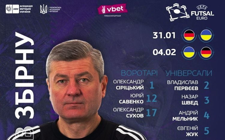 Головний тренер збірної України з футзалу Олександр Косенко визначився зі складом національної команди на два матчі відбірного циклу Євро-2026 проти Німеччини (31 січня та 4 лютого).