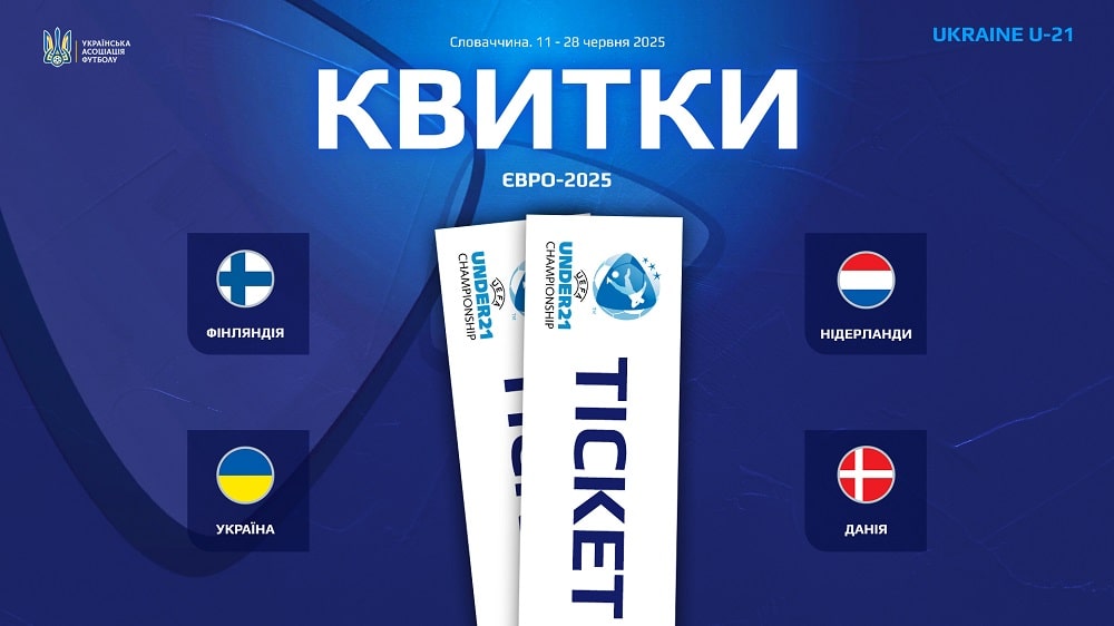 Триває продаж квитків на матчі молодіжної збірної України у фінальній частині Євро-2025 (U-21), яка проходитиме у Словаччині з 11-го до 28 червня 2025 року у восьми містах (Братислава, Трнава, Дунайська Стреда, Кошиці, Жиліна, Тренчин, Нітра, Пряшів).