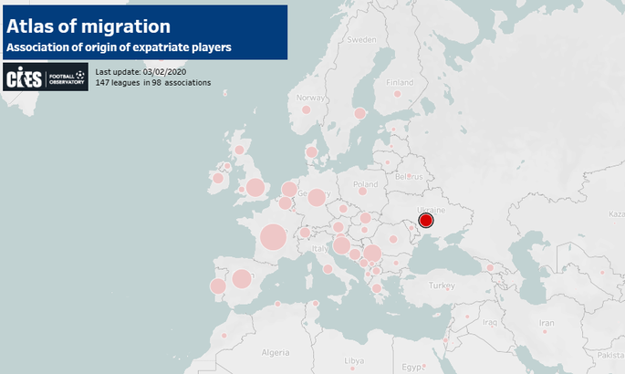 Українці випередили бразильців за кількістю футболістів у топ-чемпіонатах. Так, поміж українців цей показник складає 79,6%, а для легіонерів-бразильців – 74,6%.