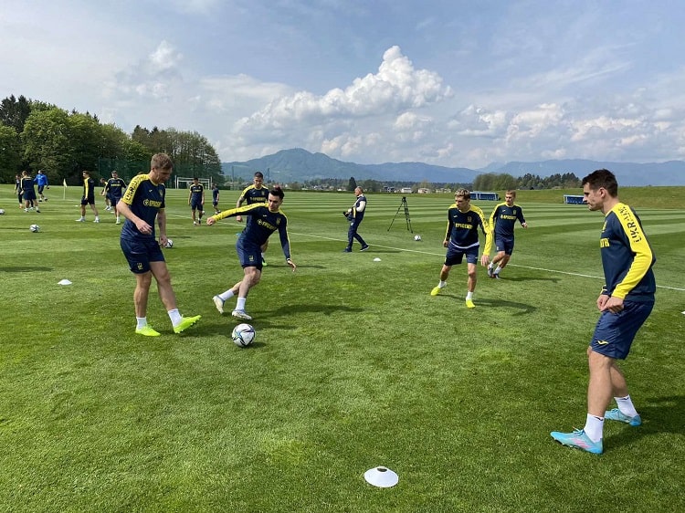 Щойно синьо-жовті завершили ранкове заняття, різко почався сильний дощ, який уже за 15 хвилин продовжився градом, а ще хвилин за 10 враз припинився. Нічого не вдієш — така вже кліматична специфіка Словенії, яка розміщена поміж горами. Позитивний момент — після дощу одразу стає свіжіше, дихається легше, а отже, і працювати на футбольному полі значно приємніше.