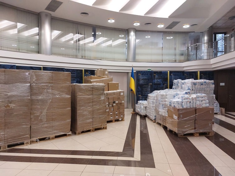 Це продукти харчування, ліки, медичні набори та устаткування, а також предмети першої необхідності, які найближчим часом буде передано евакуйованим із зони бойових дій сім’ям вимушених переселенців, людям, які залишаються в прифронтових населених пунктах, медикам, які працюють на передовій і в госпіталях, та захисникам України.