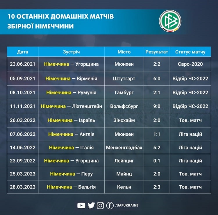 Цікавий факт. Майже рік тому, 14 червня, у Менхенгладбаху в межах Ліги націй Німеччина розбила Італію (5:2), яка нині є одним із суперників збірної України у відборі Євро-2024.