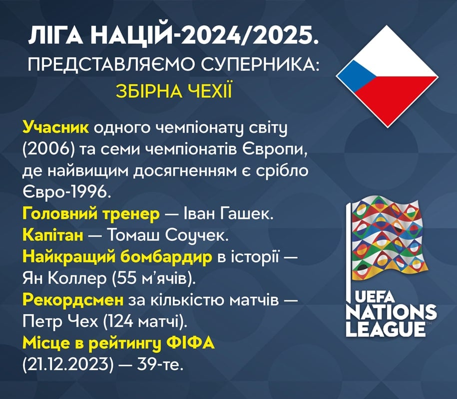 З командою Чехії, яка стала суперником збірної України у групі В1 Ліги націй-2024/2025, синьо-жовті зустрічалися п’ять разів в історії.