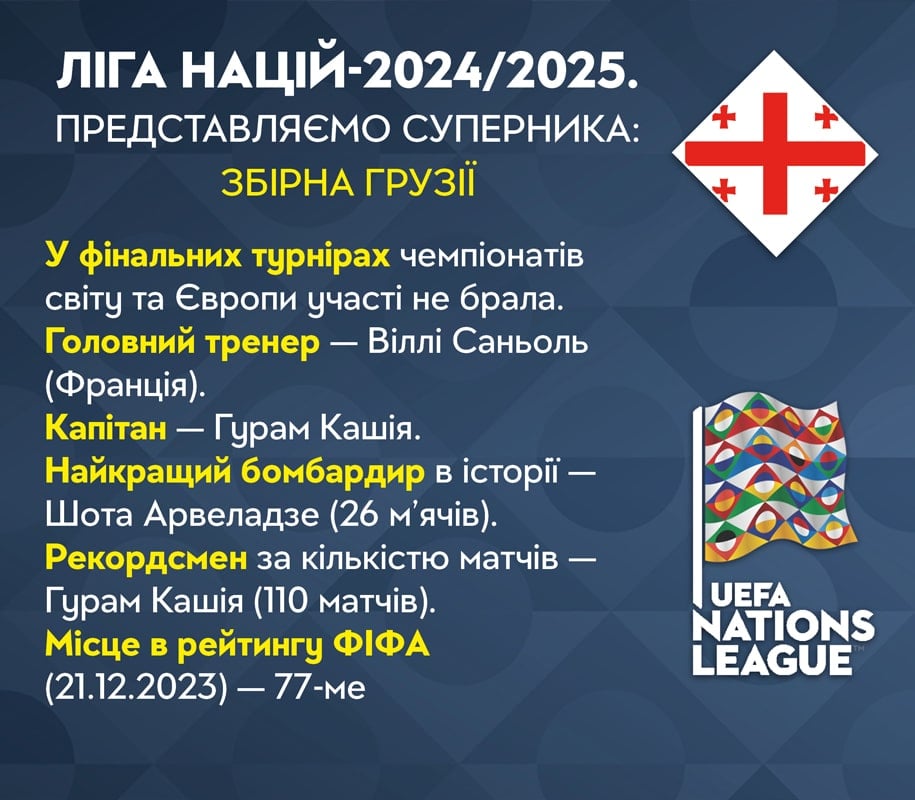 З командою Грузії, яка стала суперником збірної України у групі В1 Ліги націй-2024/2025, синьо-жовті зустрічалися дев’ять разів.