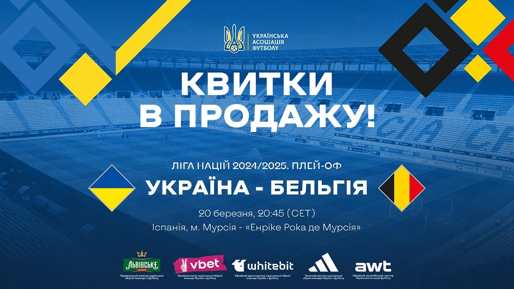 Стартує продаж квитків на поєдинок плей-оф Ліги націй-2024/2025 Україна — Бельгія, який відбудеться 20 березня (початок — о 20:45 за місцевим часом) в іспанському місті Мурсія на стадіоні Enrique Roca De Murcia.