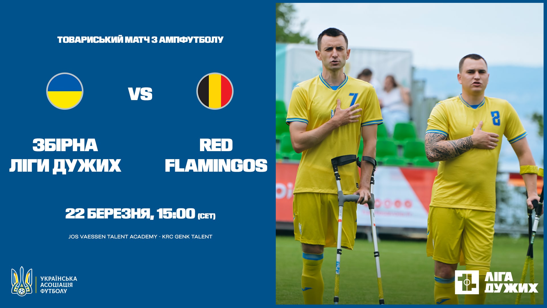 22 березня в місті Генк на полі Jos Vaessen Talent Academy збірна команда Ліги дужих проведе свій перший товариський матч — зі збірною Бельгії Red Flamingos.